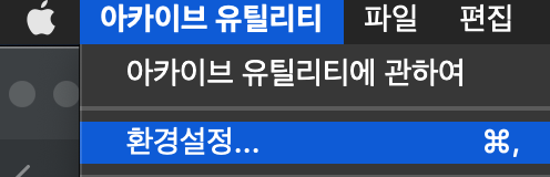 아카이브 유틸리티의 환경설정에 들어갑니다.