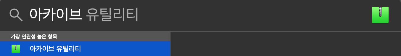 이럴경우 Mac에서 검색을 통해서 [아카이브 유틸리티]로 들어갑니다.