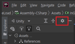 Rider창의 Expolorer창을 활성화하면 상단에 톱니바퀴 모양의 아이콘이 있습니다.