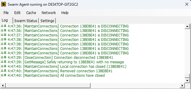 Windows기준 우측 하단의 작업 표시줄에 아래와 같이 Swarm Agent 아이콘을 더블 클릭하면