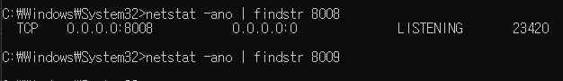 netstat -ano | findstr 8008